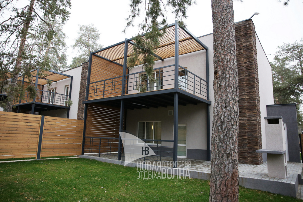 Комфортабельный двухэтажный коттедж «Аквамарин» с размещением от 4 до 6 человек и собственной зоной барбекю на улице.