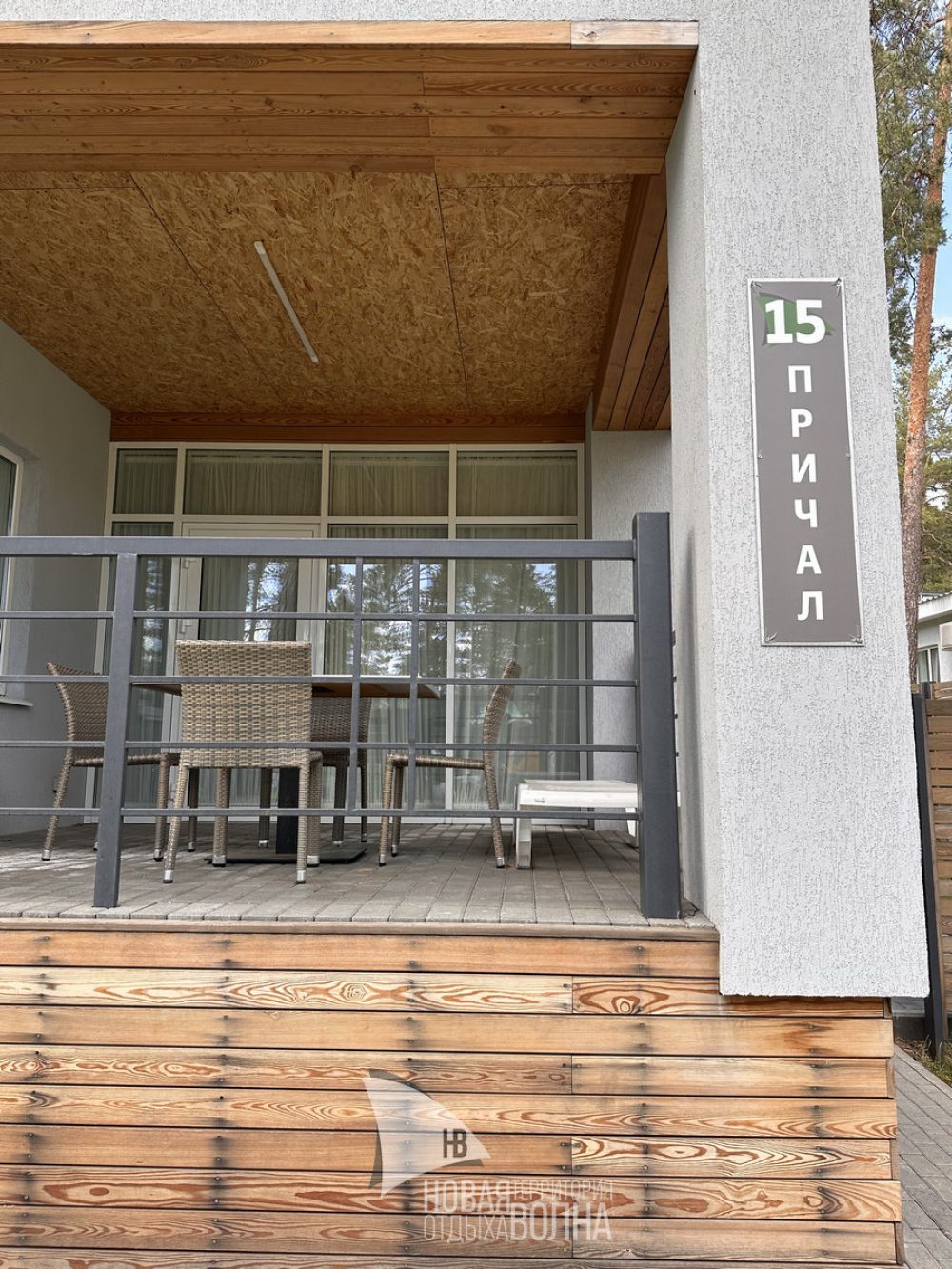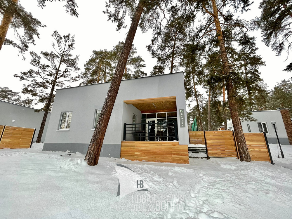 Комфортабельный одноэтажный двухкомнатный коттедж «Причал» с размещением от 2 до 4 человек и собственной зоной барбекю на улице.